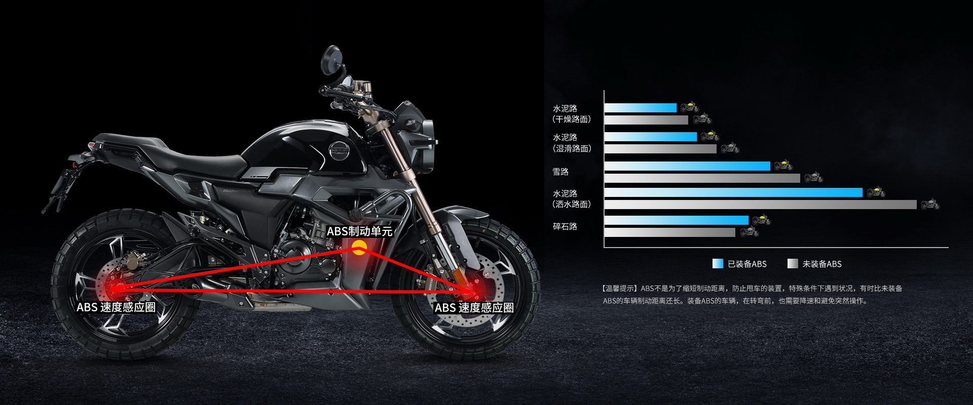 双通道ABS系统让驾驶者遇到任何突发情况都可以从容操控车辆,无论沙地、雨地、雪地ABS系统都将带来随心所欲的信心。