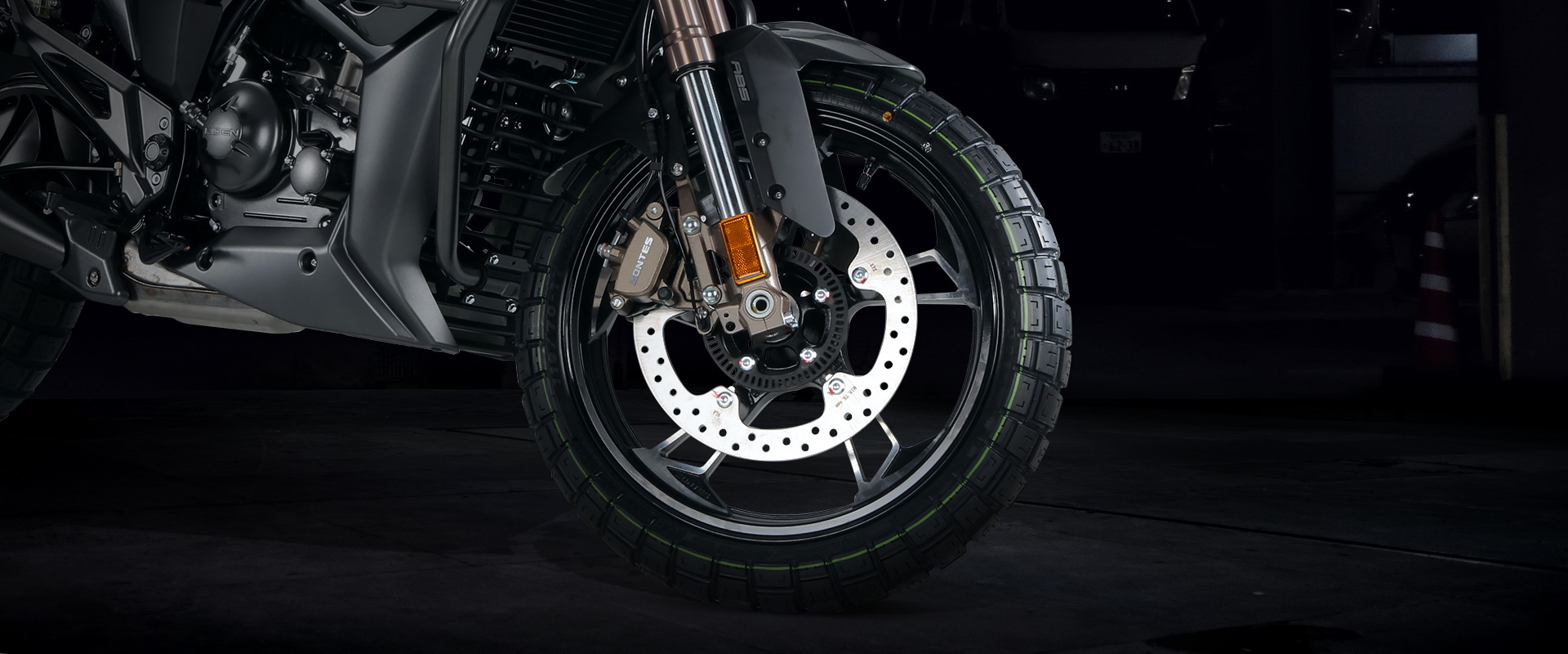 加厚胎壁,不易刺穿;加深花纹,提高抓地和攀岩能力;加密排水槽,提高雨天行驶安全性;无论直道或压弯,都能让车辆操控得随心所欲。